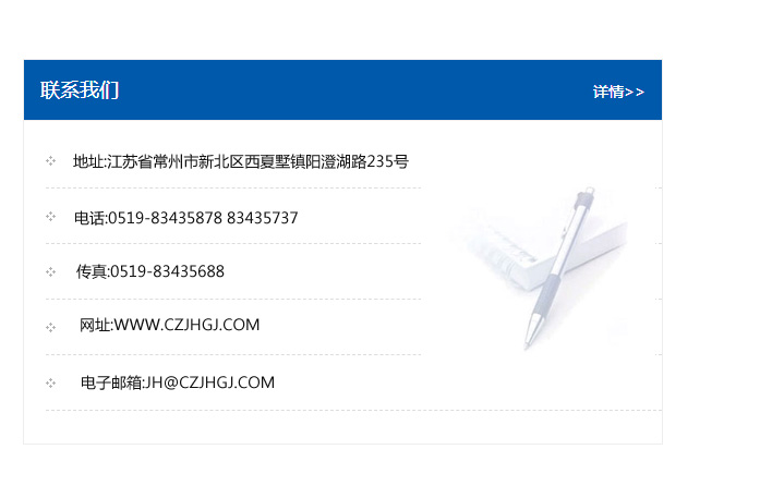 地址:常州市新北區友邦商務大廈1幢16、17層  電話:0519-85101652  傳真:0519-85112595  郵編:213022  網址:www_cz-jiayue_cn.lanyu21.com  郵箱:xiajifengaa@163.com